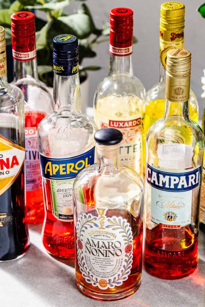 Aperol – Aperol has 11% ABV (Alcohol by volume) and is sweeter and softer (less bitter than Campari)